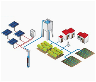 Le pompage solaire consiste à capter l’énergie solaire via des panneaux photovoltaïques pour produire de l’électricité qui alimente une pompe électrique permettant d’assurer l’exhaure de l’eau.
